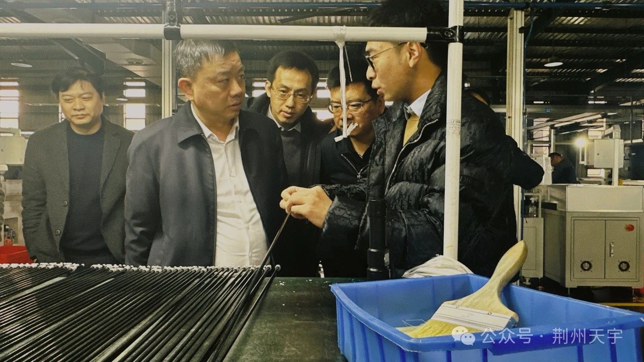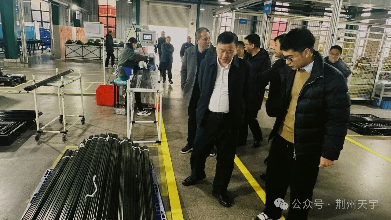 蔡俊輝處長(zhǎng)一行首先來(lái)到了天宇汽配的生產(chǎn)車(chē)間,詳細(xì)了解企業(yè)的生產(chǎn)流程、工藝水平以及質(zhì)量控制體系。在天宇汽配副董事長(zhǎng)王天宇的陪同下,調(diào)研組一行深入生產(chǎn)一線(xiàn),實(shí)地考察了企業(yè)的油管車(chē)間、成型車(chē)間等,仔細(xì)詢(xún)問(wèn)了企業(yè)的生產(chǎn)規(guī)模、產(chǎn)品種類(lèi)以及市場(chǎng)占有率等情況。 在生產(chǎn)現(xiàn)場(chǎng),蔡俊輝處長(zhǎng)對(duì)企業(yè)的自動(dòng)化生產(chǎn)線(xiàn)和嚴(yán)格的質(zhì)量控制流程表示高度贊賞。他指出,天宇汽配作為荊州地區(qū)汽車(chē)零部件生產(chǎn)的領(lǐng)軍企業(yè),應(yīng)該在保證產(chǎn)品質(zhì)量的進(jìn)一步提升生產(chǎn)效率和創(chuàng)新能力,為荊州市乃至湖北省的汽車(chē)產(chǎn)業(yè)發(fā)展做出更大貢獻(xiàn)。